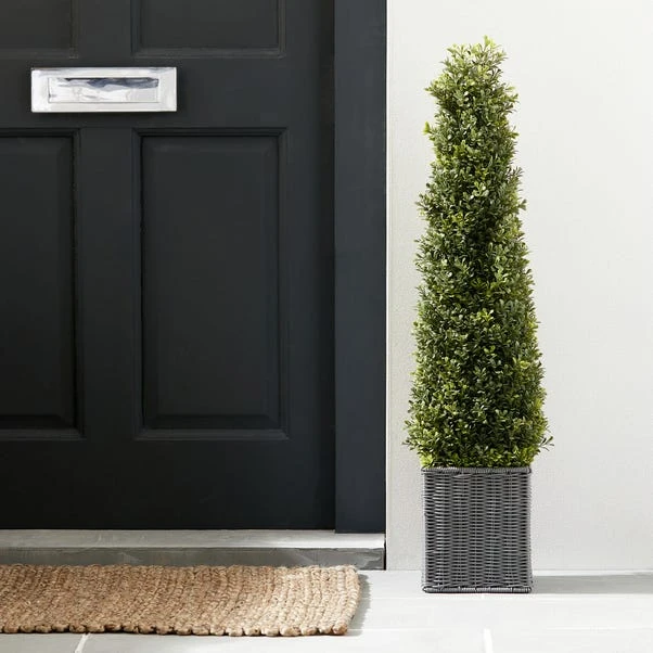 This boxwood cone tree is an attractive alternative to real plants. Made from weather resistant materials, it is easy to clean and can be used both indoors and outdoors.