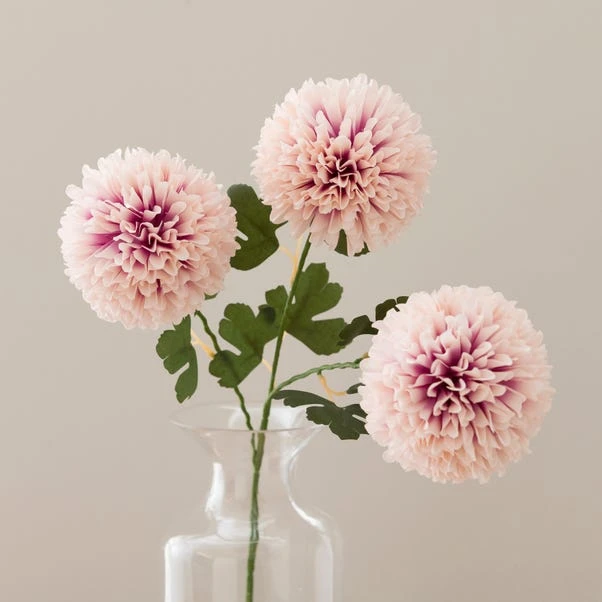 Bring a soft, romantic touch to your space with the Artificial Pink Ball Dahlia Stem. Featuring a beautiful, realistic design in a delicate pale pink colourway, it adds a touch of femininity to any arrangement. Detailed leaves enhance its lifelike appearance, whilst its low-maintenance nature ensures lasting beauty with minimal effort.
