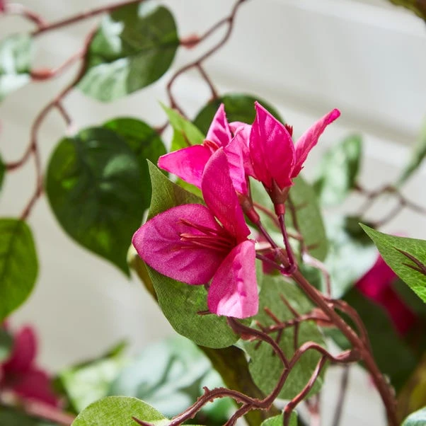Transform your indoor or outdoor areas into a Mediterranean retreat with the Artificial Purple Bougainvillea Tree in a Black Plastic Plant Pot. Its vibrant, lifelike flowers and UV-resistant design ensure lasting beauty with zero upkeep. Perfect for patios or living spaces, it adds a burst of colour wherever it’s placed. Bring it indoors during extreme weather to preserve its charm.