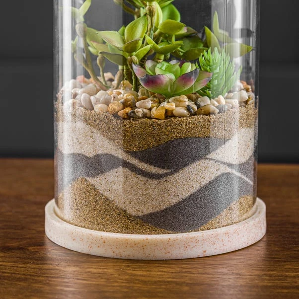 This beautiful artificial succulent garden is the perfect piece to accompany any room of the house with its intricate layered sand design and realistic finish. It is the perfect piece as no maintenance is involved and it looks stunning when on shelves and sideboards for display.