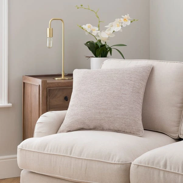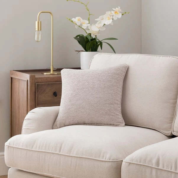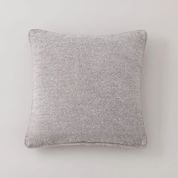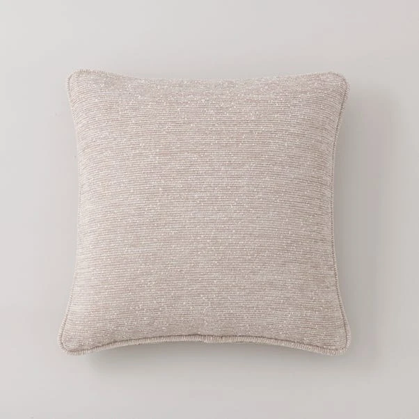 Crafted from luxurious boucle and chenille yarns to create a sumptuously soft texture, this cushion is filled with a plump polyester hollowfibre insert made for maximum comfort and is complete with a removable cover. This stylish cushion is made from 100% recycled polyester and available in two sizes and easy to style colourways. Finished with a delicate piping detail, this cushion will suit many home décors.