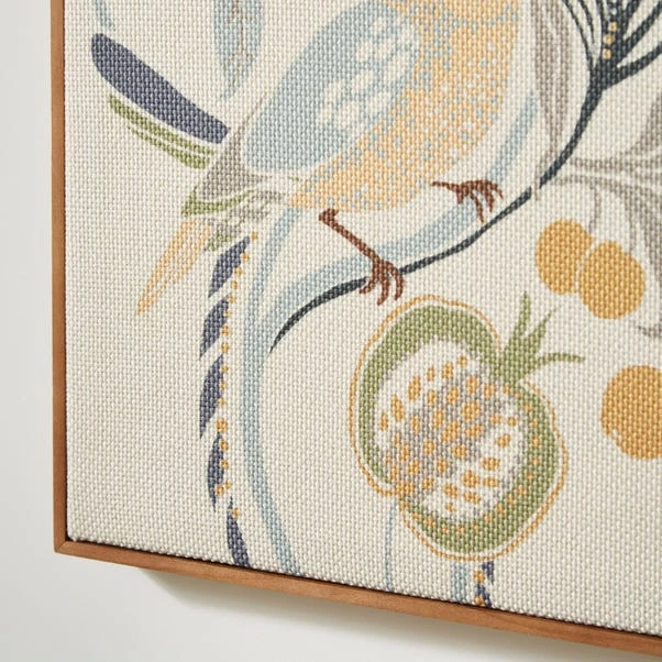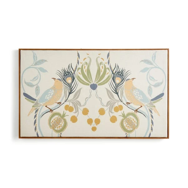 Elevate your walls with the allure of our Havisham Landscape Canvas. This stunning artwork features intricate embroidery, showcasing graceful birds and flourishing florals against a calming neutral-toned background.