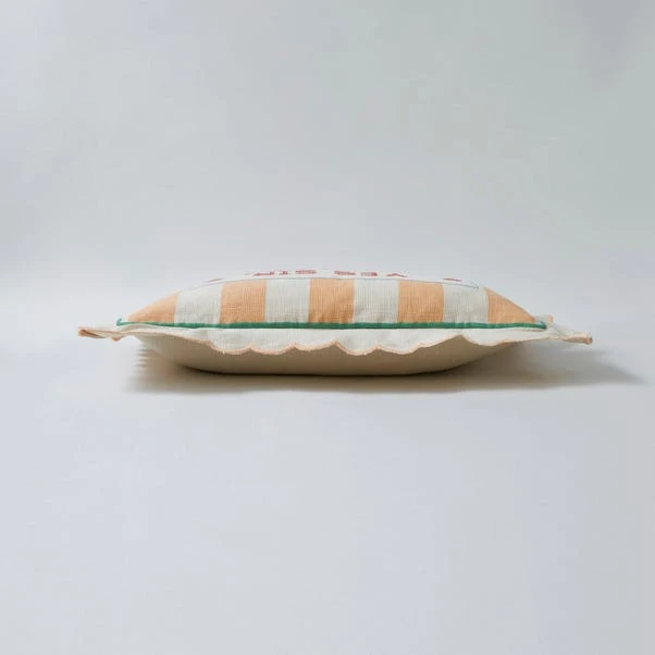 Add a little charm to your home décor with this delightful rectangular cushion. Sporting a vintage design with a modern slogan print, this cushion is perfect for lifting the mood in any space. Adorned with a delicate frilled edge allowing you to make a statement within your home easily.