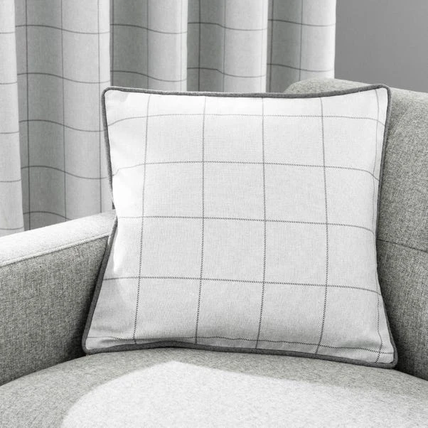 Patterned with a wide checked design in a soft dove grey colour, this square Luna cushion features a luxurious brushed textured feel and comes complete with a plump hollowfibre filling for added comfort.