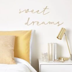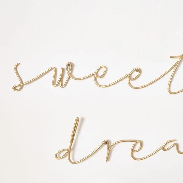 Add a decorative touch to your bedroom wall with this simple yet stylish Sweet Dreams Metal Wire Words, made from metal with a matt gold finish. Perfect for adding the finishing touches to your home.