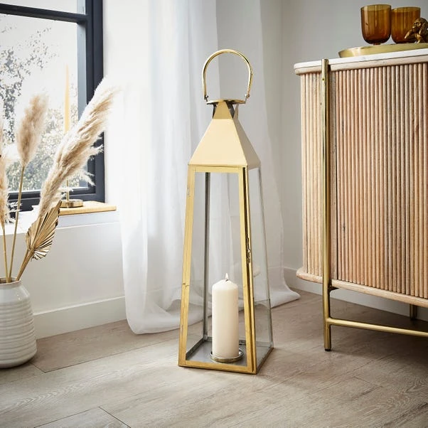 Brighten your living space with our stunning Tall Metal Lantern, the ultimate lighting companion. With a conical shape that adds a touch of sophistication, this piece boasts a sleek and contemporary feel.