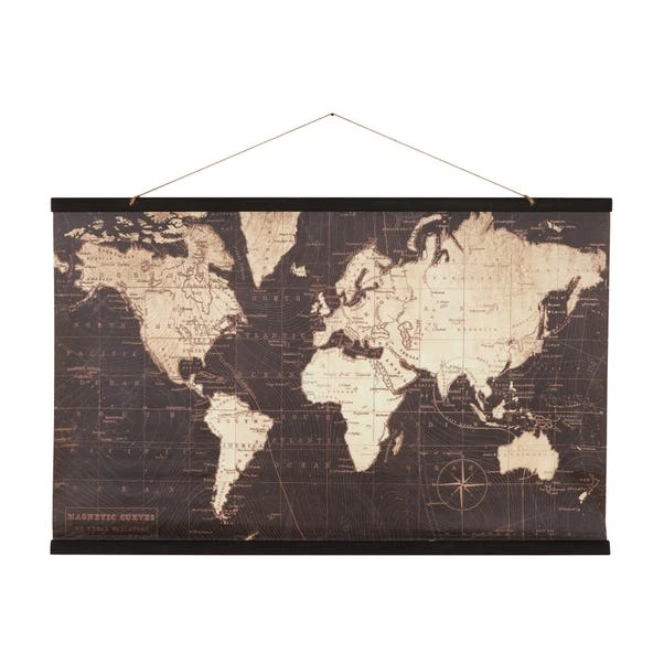 Add a striking addition to your home with this stunning World Map Hanging Mural, featuring a black and gold colourway world map with a black wood frame and a rope hanging feature. This world map mural will make a stylish statement centre piece in the most loved rooms of your home.
